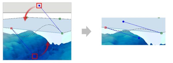 - 手順 7、8 を各頂点間で行い、[水面] ポリゴン全体を波打つように表現して、ツールバーの [完了] をクリックします。