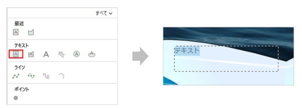 - [挿入] タブの [グラフィックスとテキスト] で詳細をクリックし、[四角形テキスト] をクリックします。その後、表層線の上部に四角形を描画します。