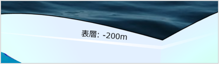 - 各線を、ここまでの手順に倣って中層、漸深層、超深海層のレイヤーに重なるように移動、調整し、各テキストの内容をそれぞれ以下のように変更します。