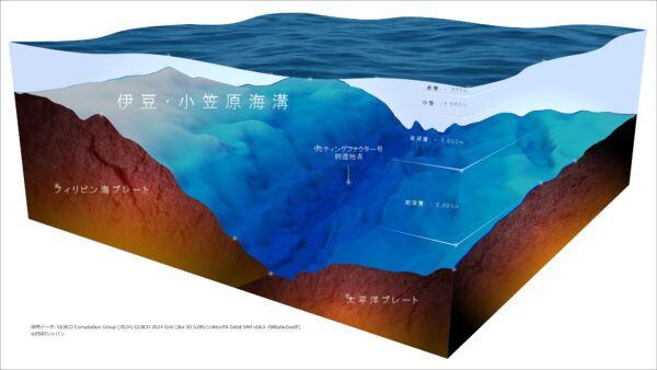 「【速報】日本人の最深潜航記録を60年ぶりに更新! ~小笠原海溝最深部9801m(暫定値)にフルデプス有人潜水船リミッティングファクター(Limiting Factor)号で潜航調査~」 - 使用した海底地形データの出典は以下の通りです。