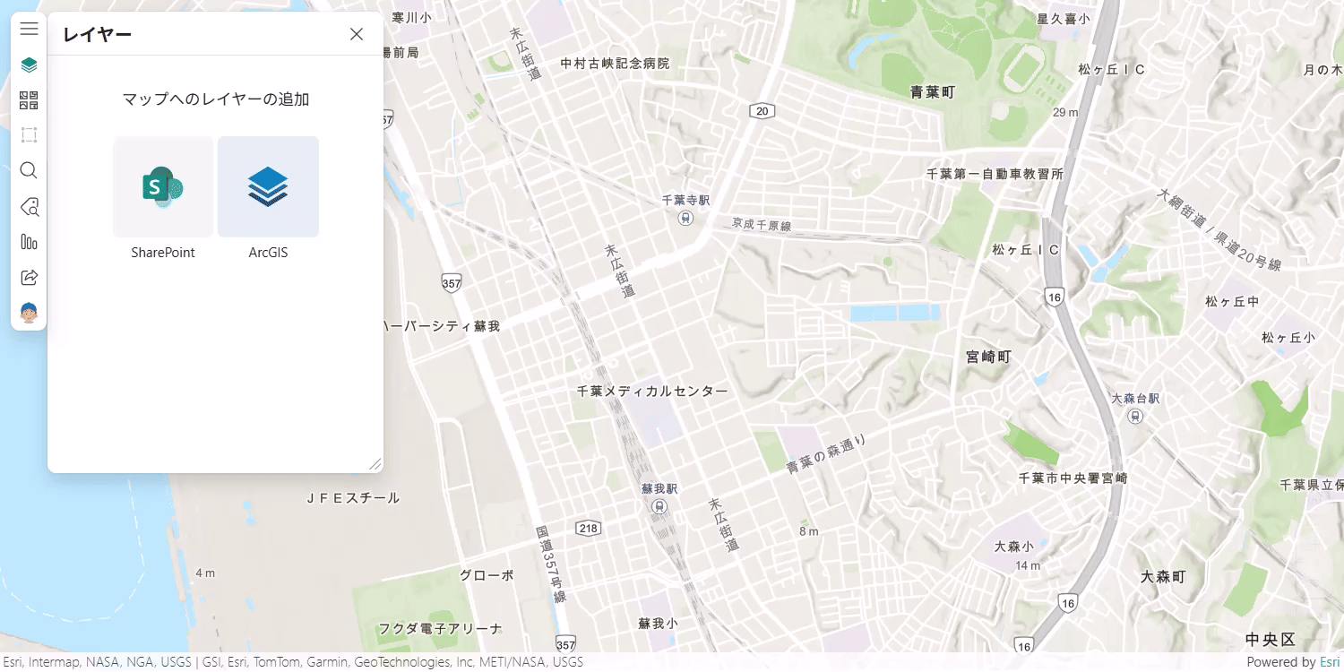 - SharePoint サイトに追加した ArcGIS for SharePoint のマップで、[ジオタグとジオサーチ] を開きます。