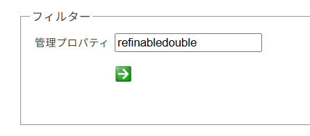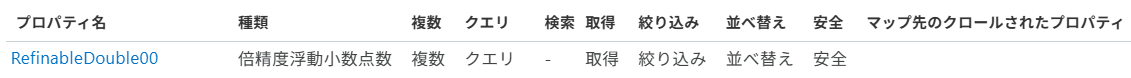 - [マップ先のクロールされたプロパティ] が空欄の、倍精度浮動小数点数の管理プロパティ名をクリックして、メニューを開きます。下記の例では、「RefinableDouble00」を使用します。