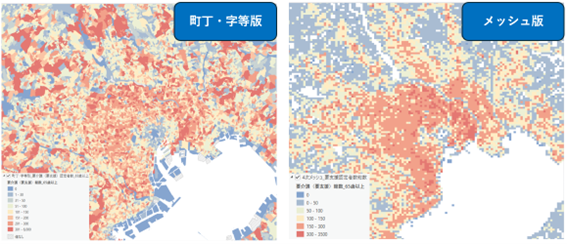 要介護・要支援認定者総数 (左:町丁・字等別、右:4 次メッシュ別)