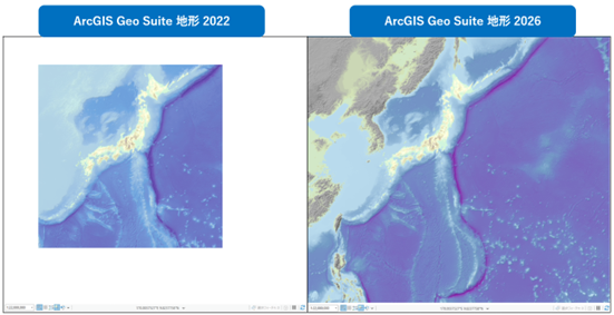 海底地形の収録範囲 (左:2022 版、右:2026 版)