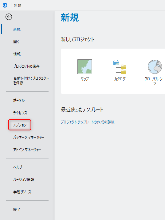 1. [プロジェクト] タブ → [オプション] をクリックします。