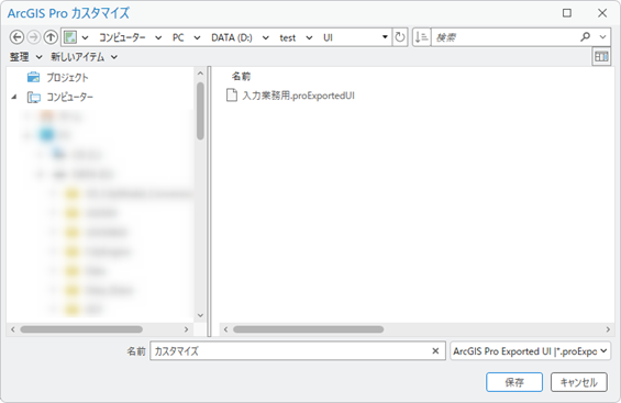 1. 参照ダイアログ ボックスで、ファイルの保存先フォルダーを参照し、任意の名前を設定し、[保存] をクリックします。*.proExportedUI という拡張子のファイルが出力されます。