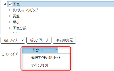 カスタマイズを行っていて、デフォルトに戻したい際は、リセットが可能です。