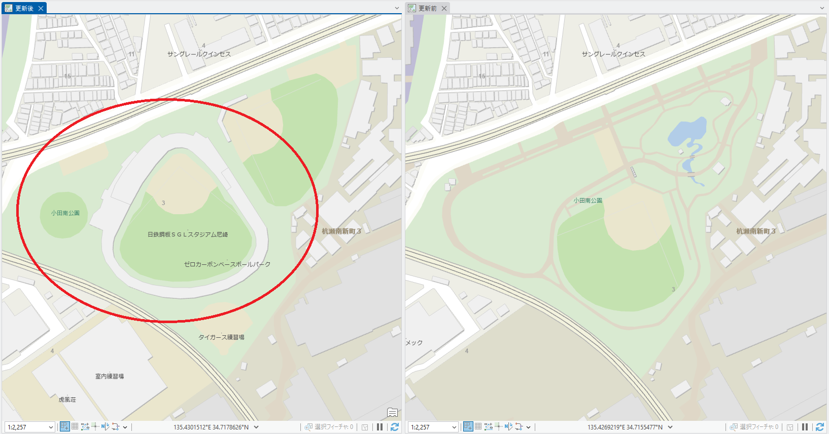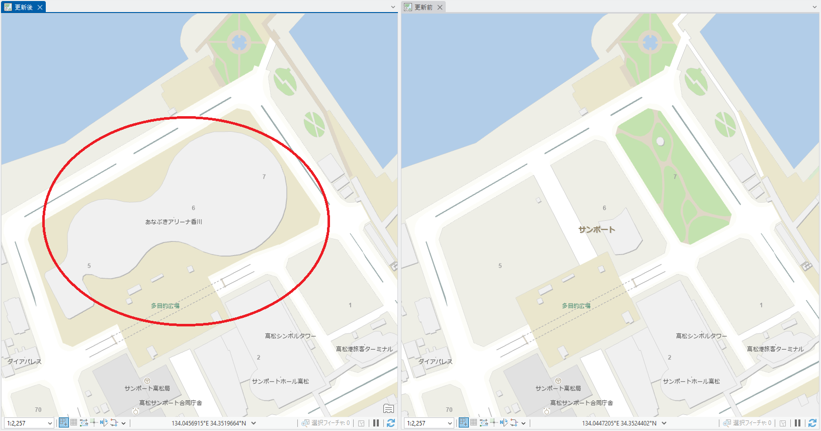 上記の他にも各地域の建物や道路、敷地や街区形状が変更されています。