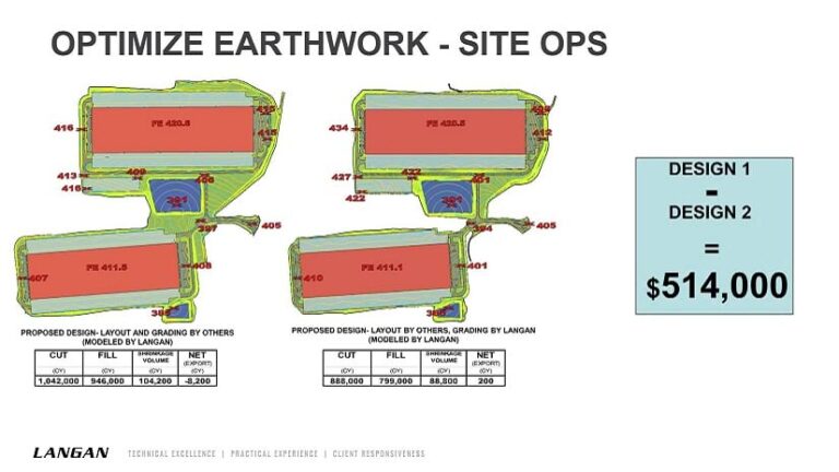 Langan社のチームは、敷地内での土工量を最小限に抑える造成計画を作成することで、コストの抑制を支援しています。