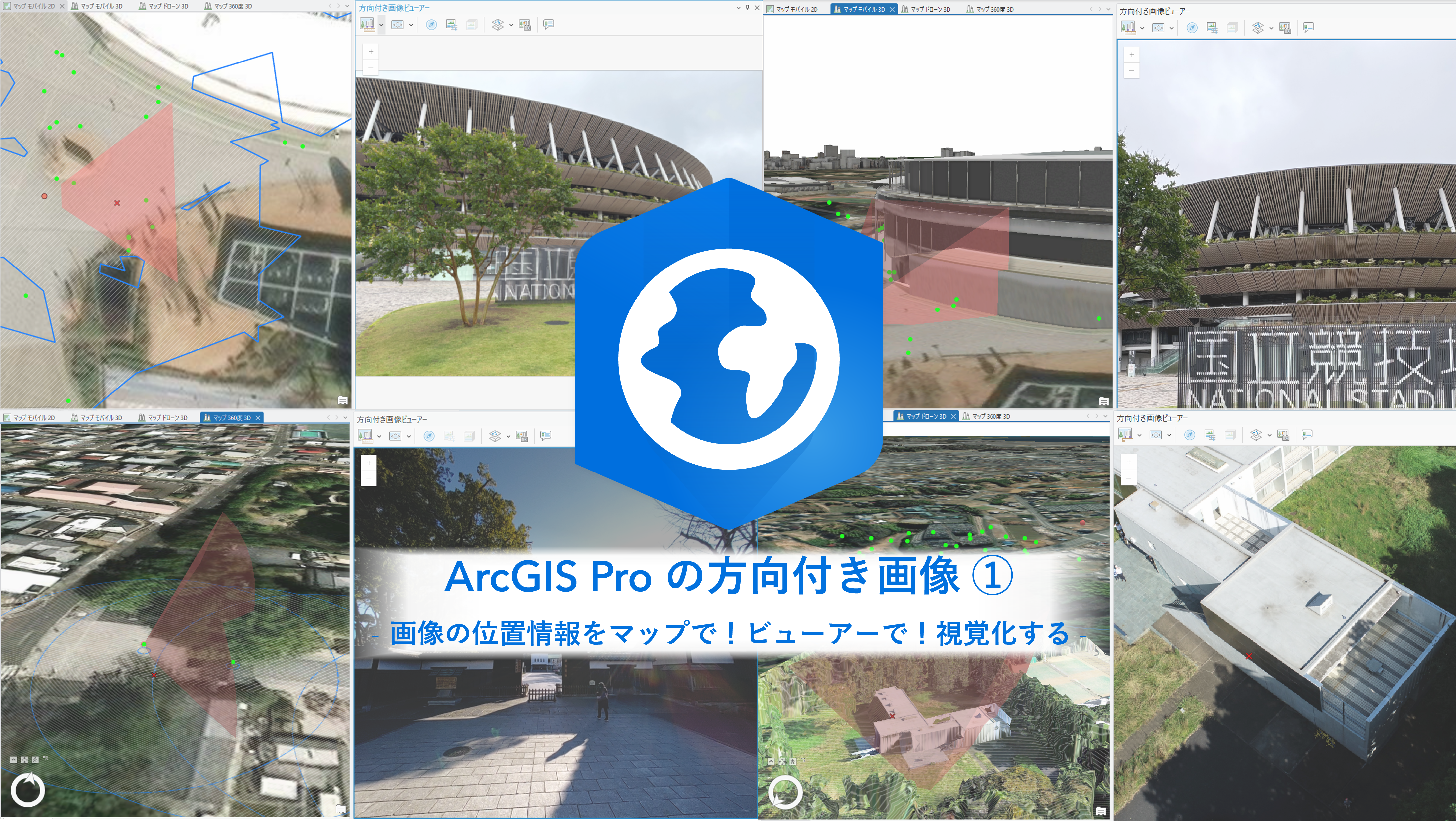 ArcGIS Pro では、画像のメタデータ (経度/緯度・高さ・カメラの方向など) を利用して、GIS に統合する機能である方向付き画像を作成できます。方向付き画像では、さまざまな画像を視覚化したり解析に活用したりできます。本記事をはじめとして、複数回にわたって ArcGIS Pro の方向付き画像で利用できる機能をご紹介します。