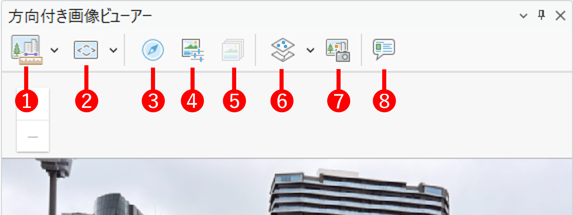 方向付き画像ビューアーの機能ボタン (ビューアーの上部にあります)