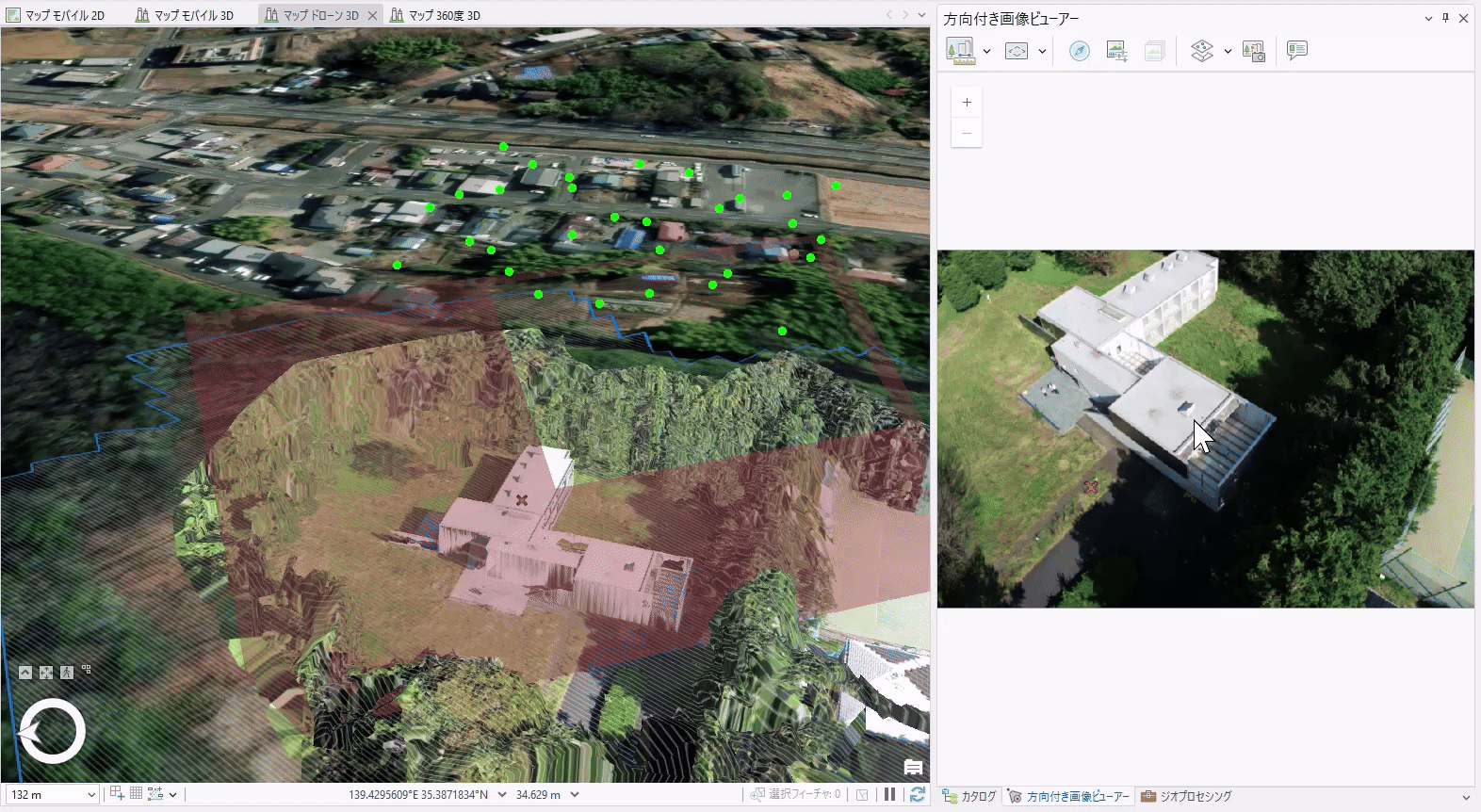 今回は、ArcGIS Pro の方向付き画像の基礎的な概要として、方向付き画像および方向付き画像ビューアーについてご紹介しました。より詳細な内容については、「方向付き画像の概要」をご参照ください。