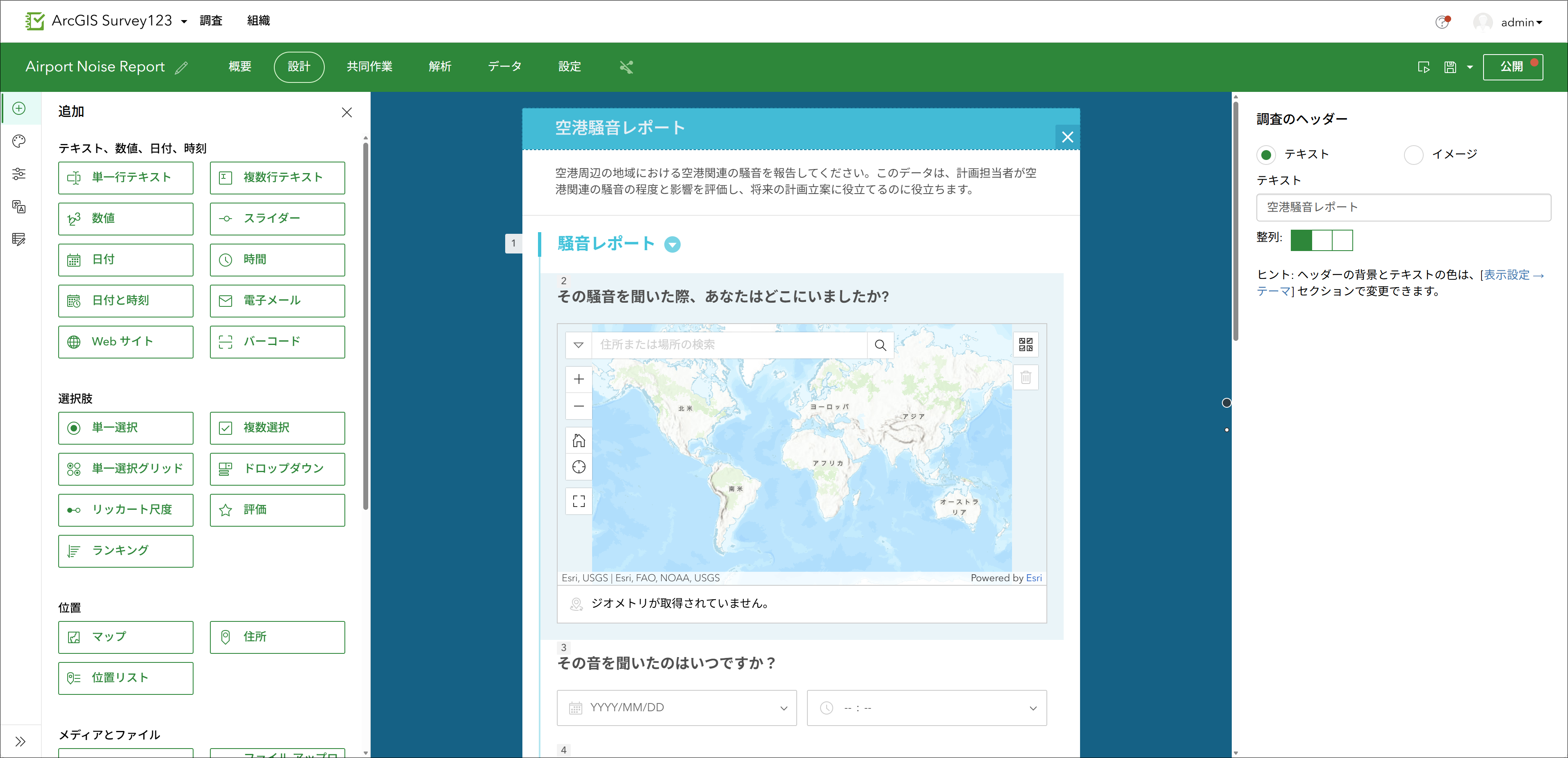 - ArcGIS Survey123 Web サイト バージョン:3.24