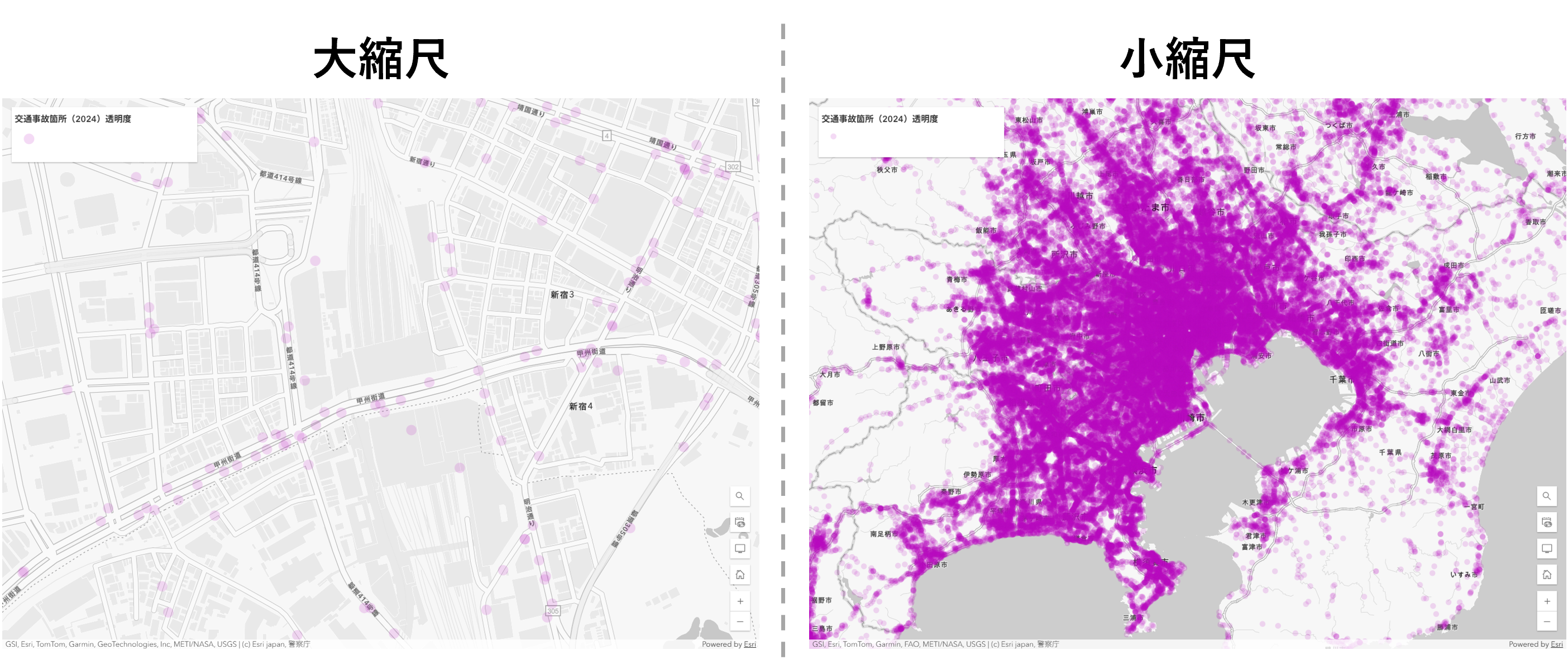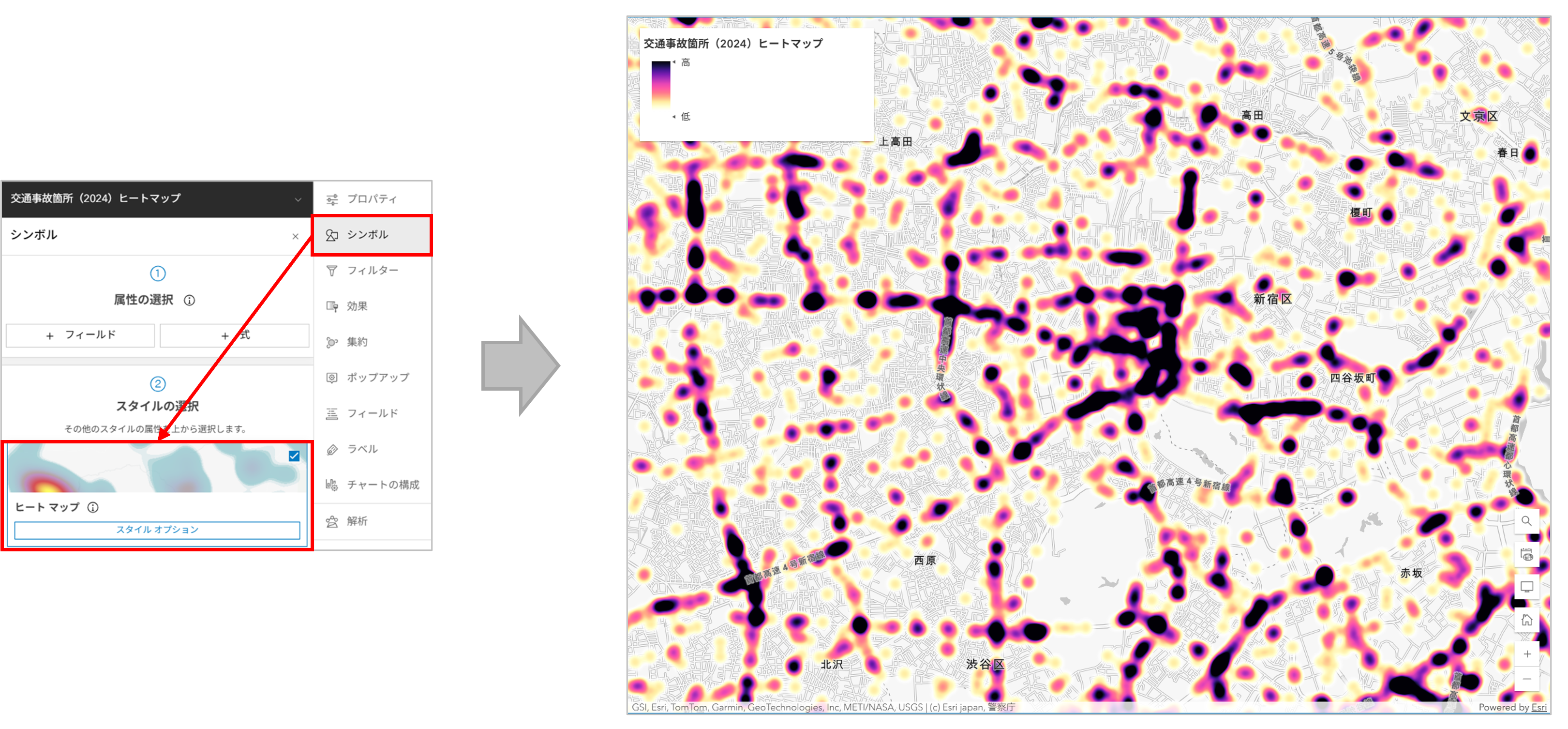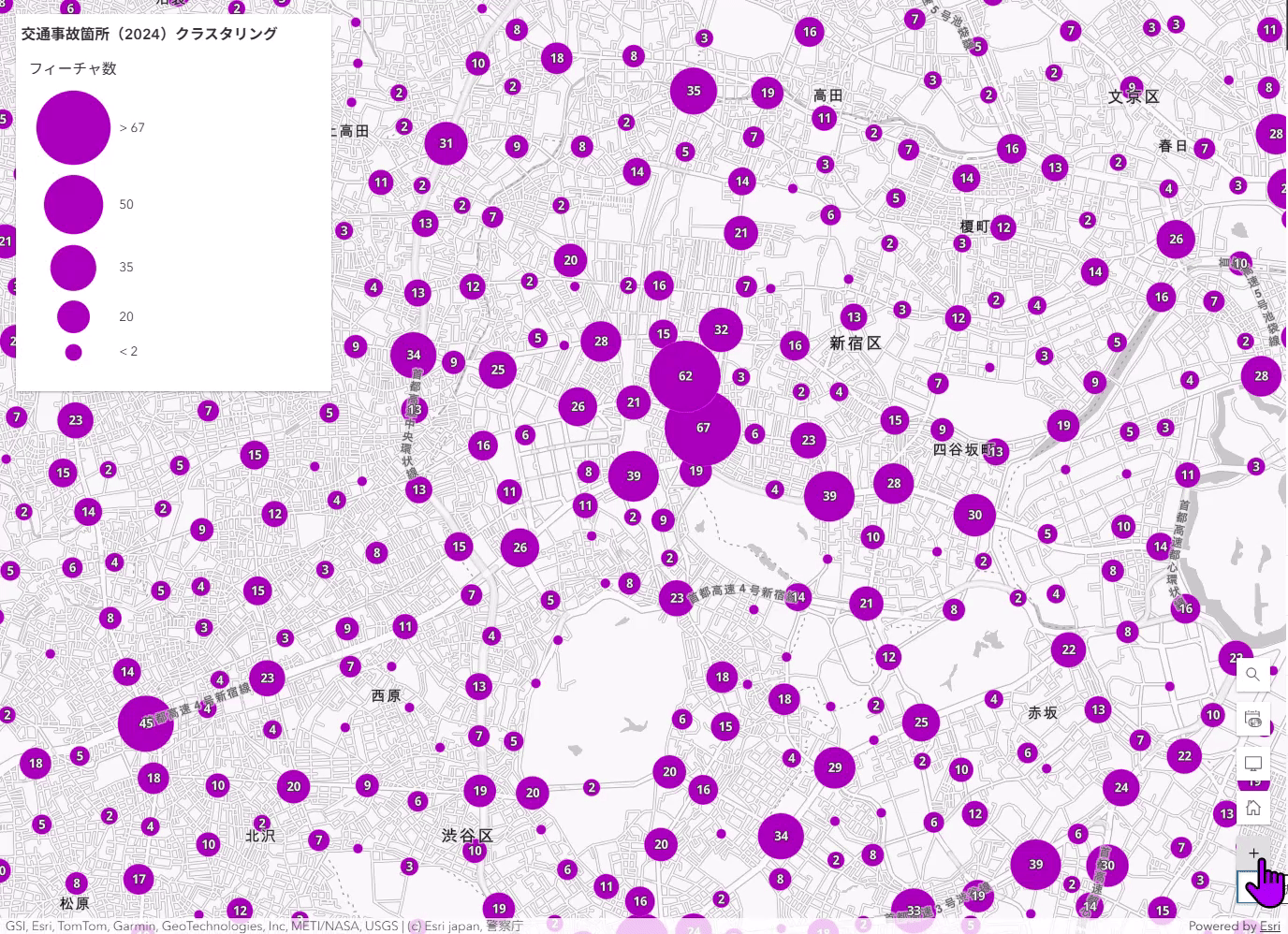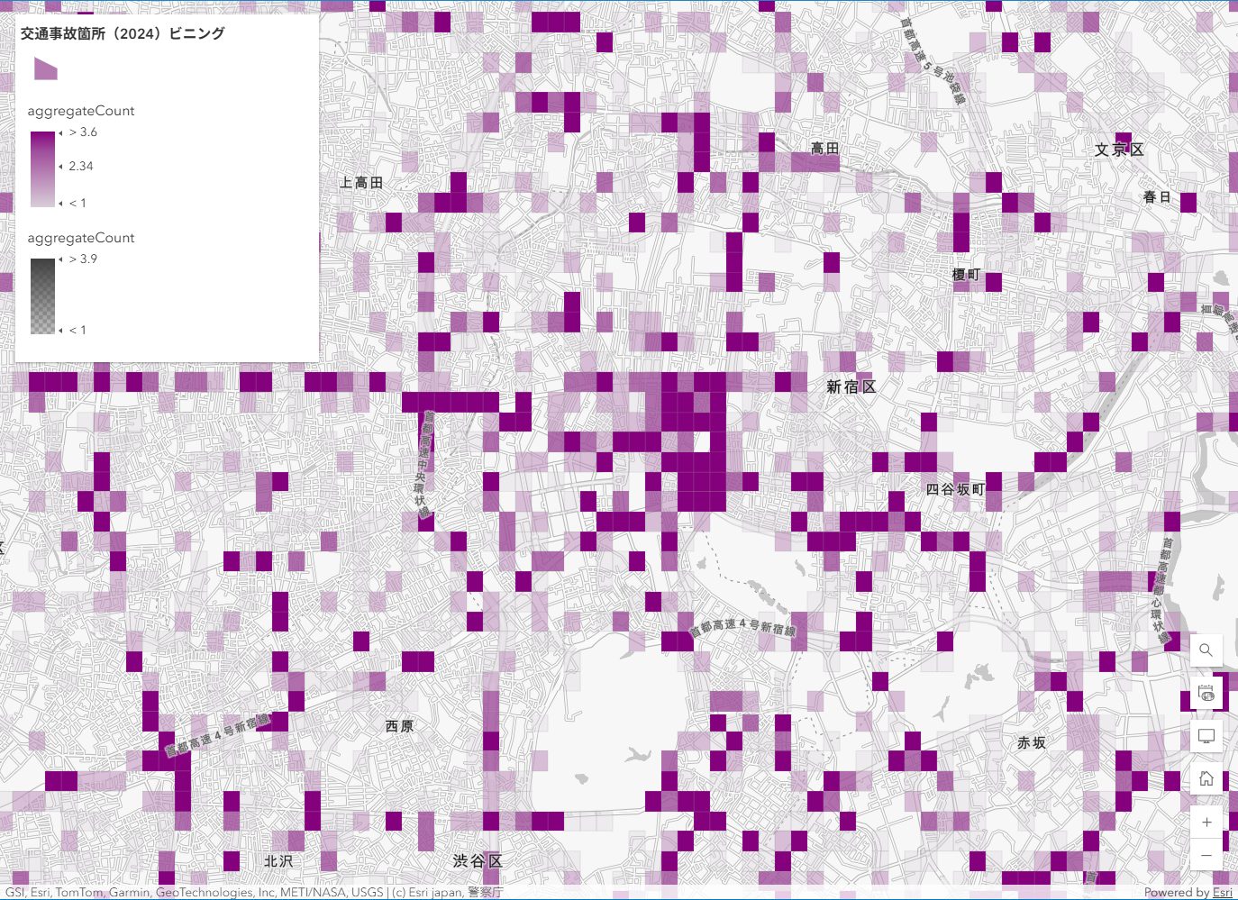 ここからは、ArcGIS Living Atlas of the World に公開されている「交通事故箇所 (2024)」ポイント データを使用して、具体的な手順と活用方法をご紹介いたします。