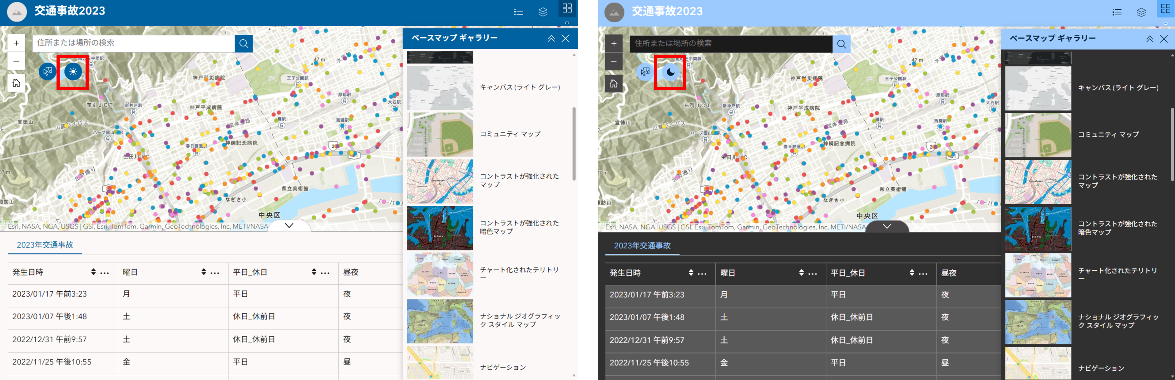 アプリのテーマをライト モード、ダーク モードに切り替えられるテーマ モード スイッチャー ウィジェットが新たに追加されました。アプリの利用環境が明るい場合はライト モード、暗い場合はダーク モードでの画面操作が適しています。アプリの利用者は、自身の利用環境に合わせて表示モードを変更できます。