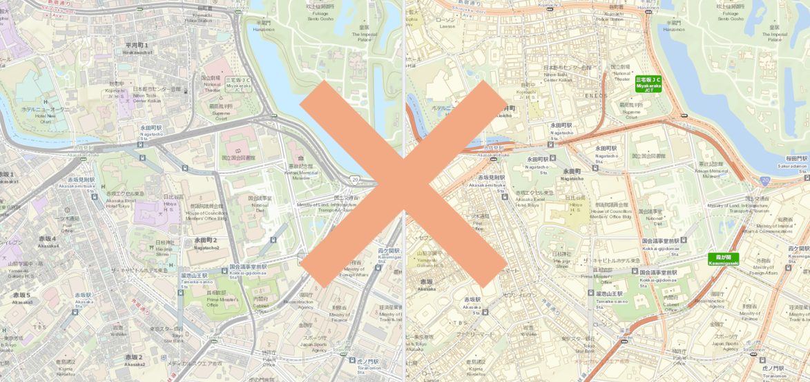 現在もレガシー ラスター ベースマップをご利用の場合、定期的なメンテナンスや継続的な更新が行われているベクター ベースマップの利点を十分に活用できていない可能性があります。