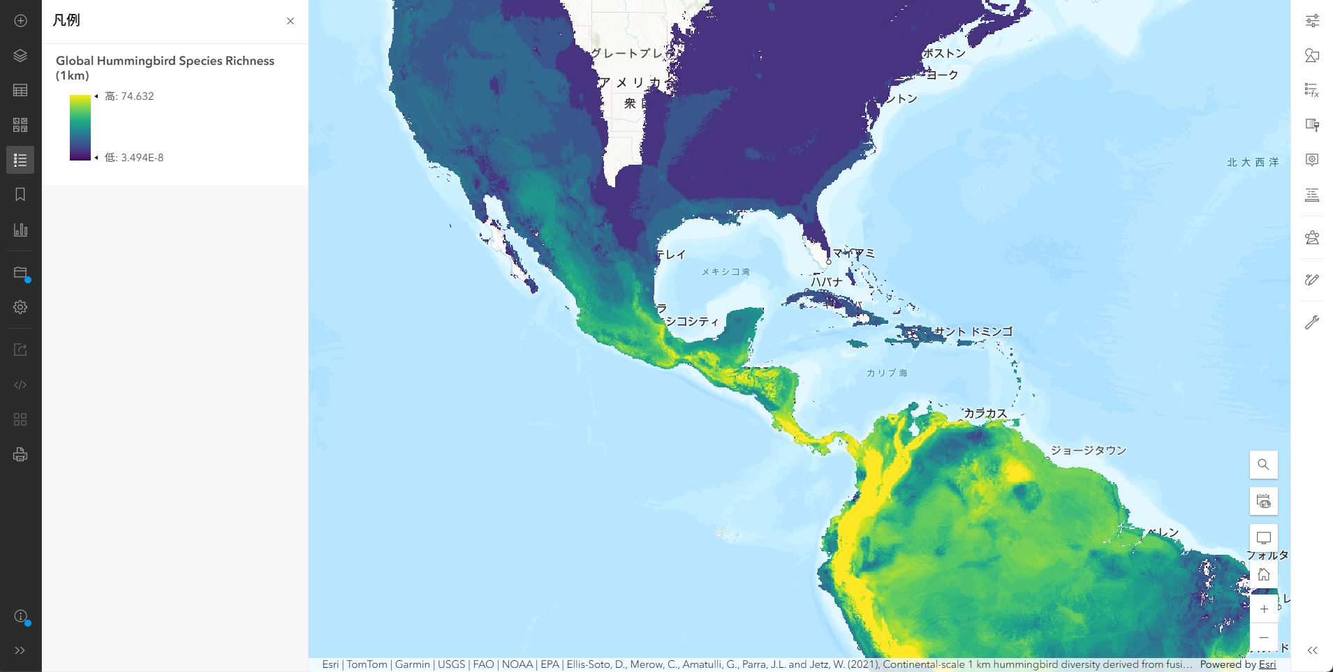 - GBIF Species Occurrence: https://livingatlas.arcgis.com/ja/browse/#d=2&q=GBIF