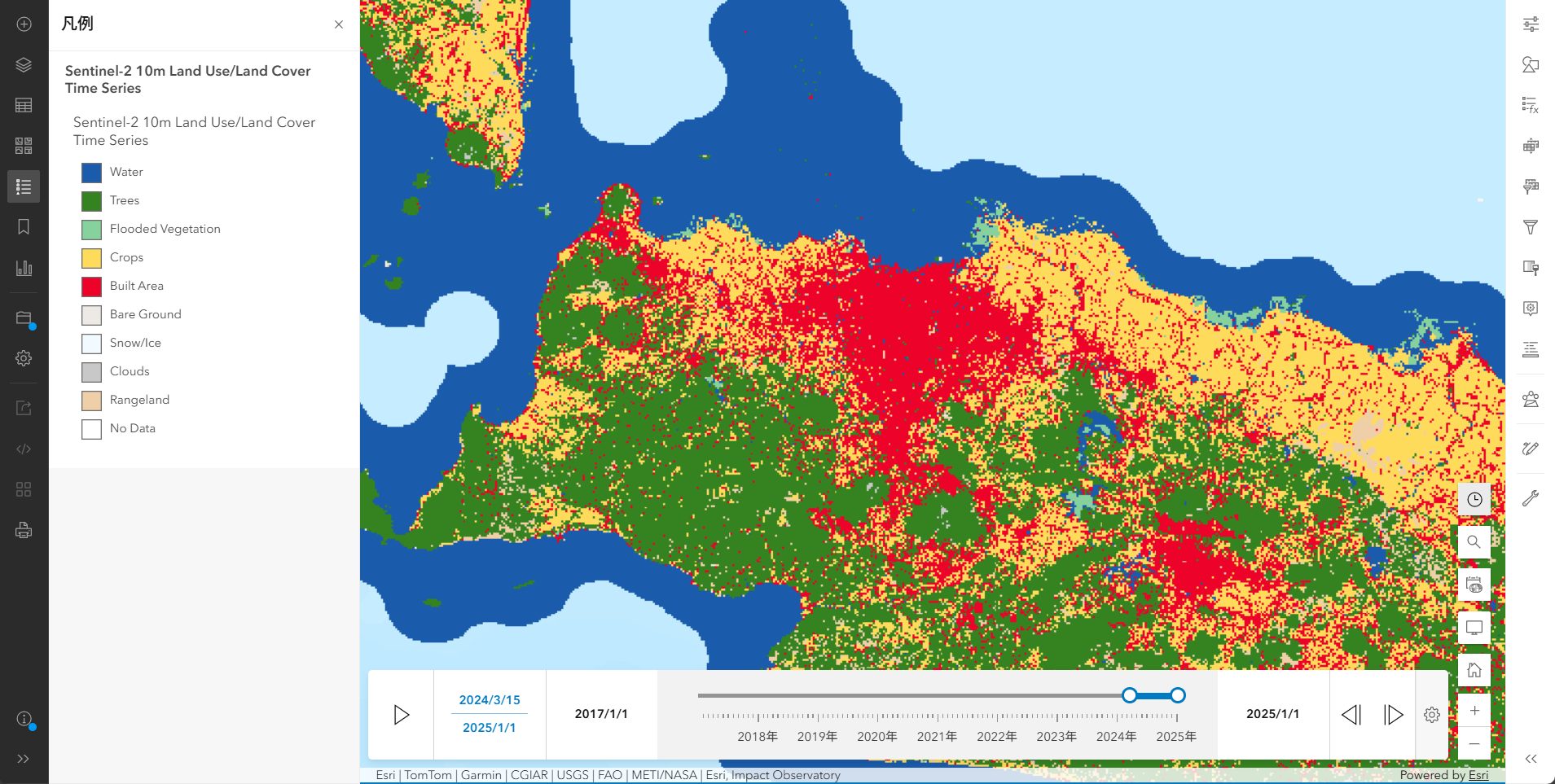 - Sentinel-2 10m Land Use/Land Cover Time Series: https://livingatlas.arcgis.com/ja/browse/#d=2&categories=Land+Cover