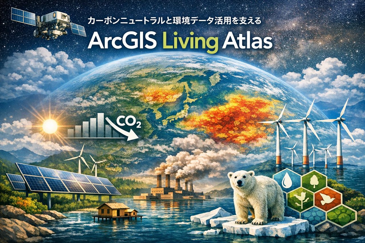 Esri が提供する ArcGIS Living Atlas of the World (以下、Living Atlas) には、環境・サステナビリティ分野での意思決定や分析を支える多様なコンテンツが集約されています。ESRIジャパンでは、こうした環境・気候データを ArcGIS 上で統合・分析し、排出量把握、再エネ適地評価、リスク評価などを支援するカーボンニュートラル GIS ソリューションを提供しています。